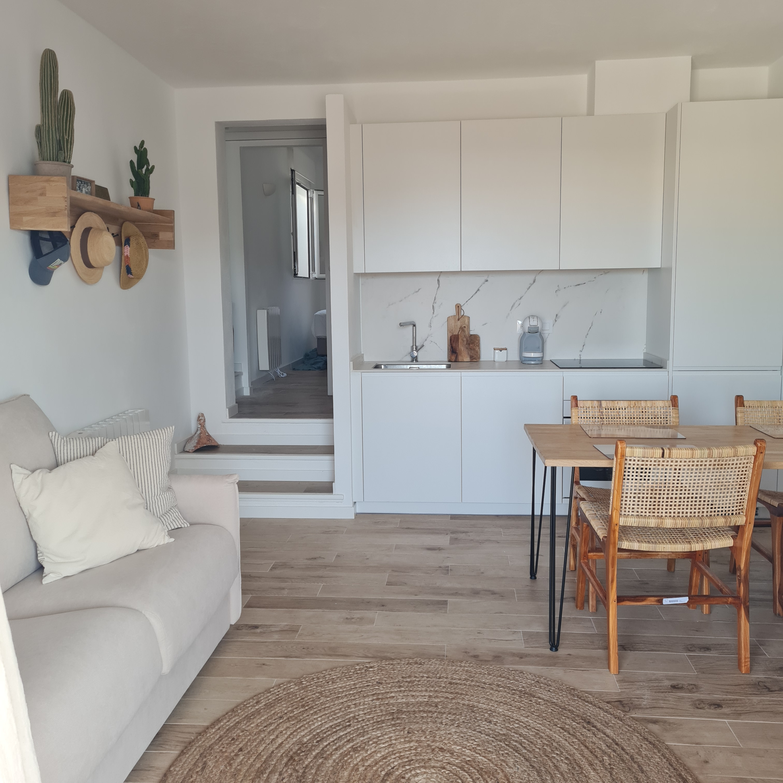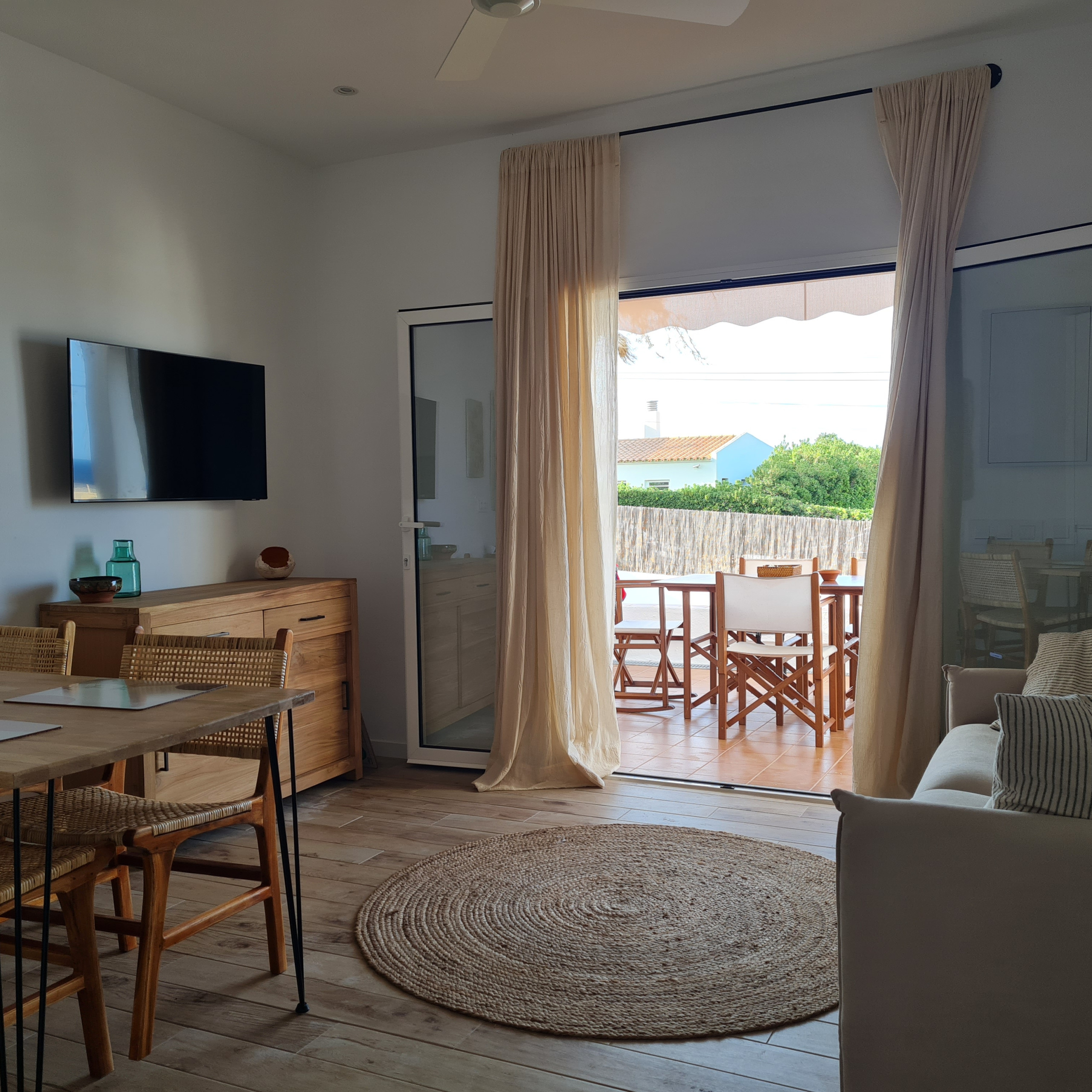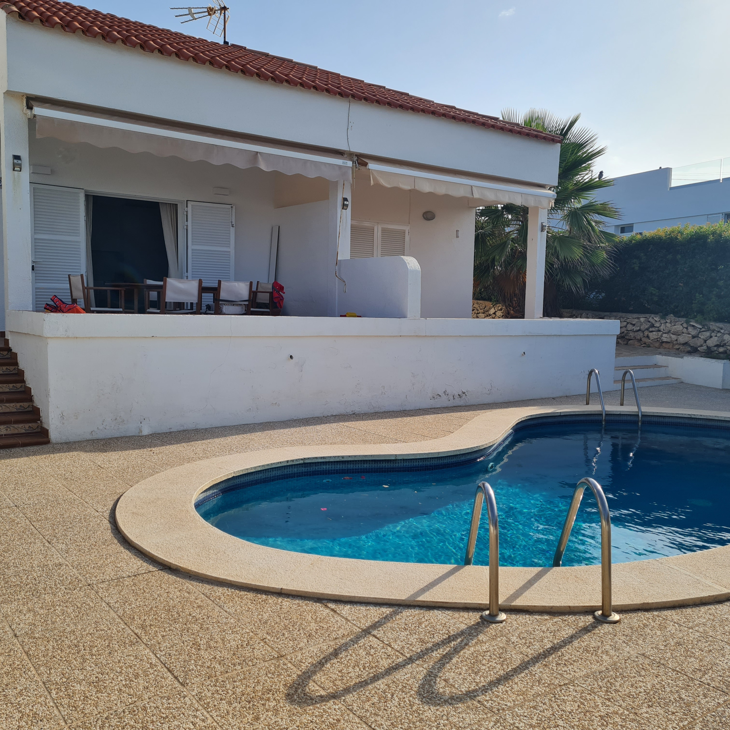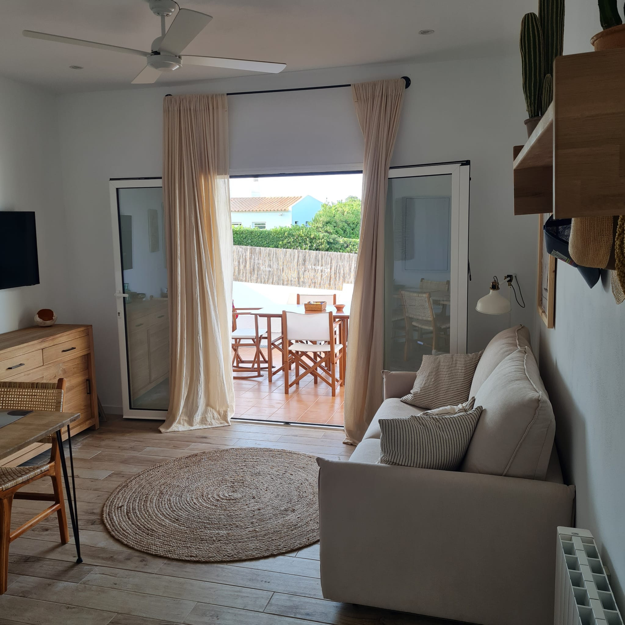 El apartamento en San Luis posee 2 dormitorio(s) y capacidad para 6 personas. Alojamiento de 50 m². Dispone de terraza, lavadora, plancha, acceso internet (wifi), secador, calefacción bomba de calor, aire acondicionado, piscina comunitaria, parking aire libre, 3 ventiladores, 1 Televisor. La cocina americana, de inducción, está equipada con nevera, horno, congelador, vajilla/cubertería, utensilios/cocina, cafetera, tostadora y exprimidor.