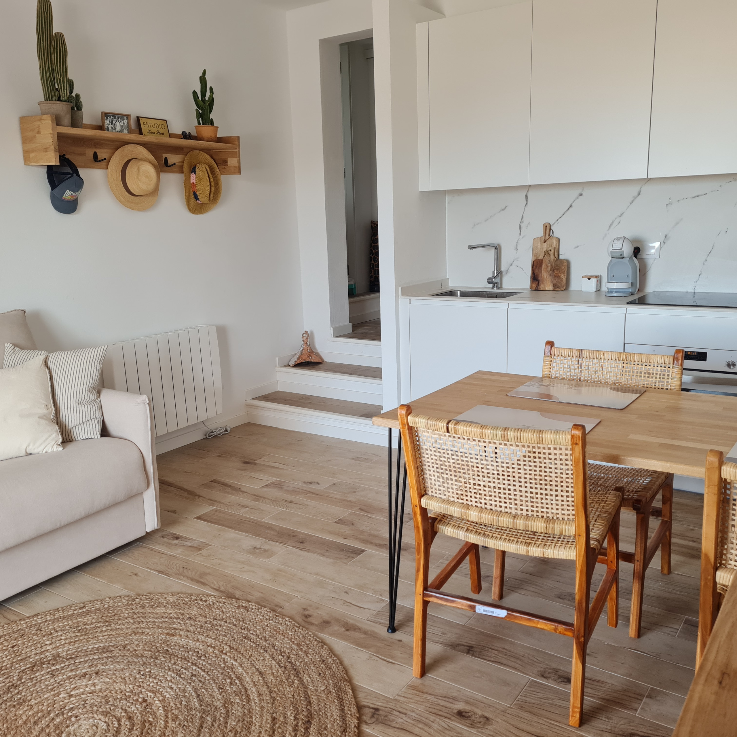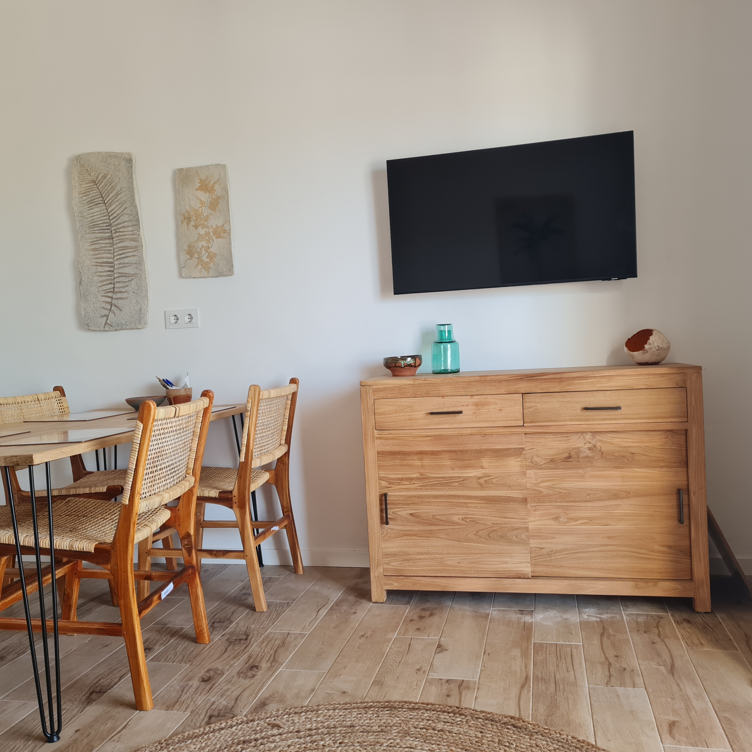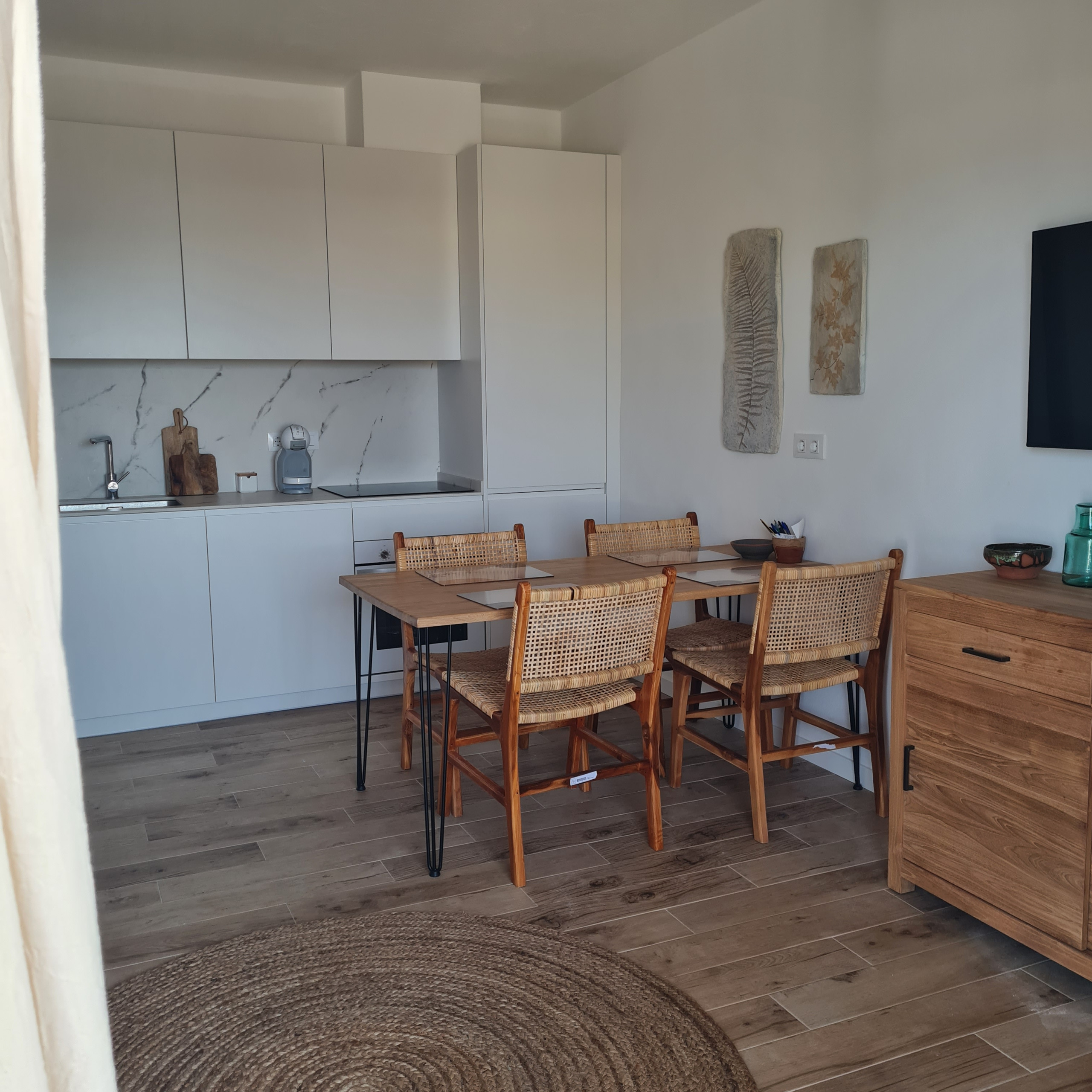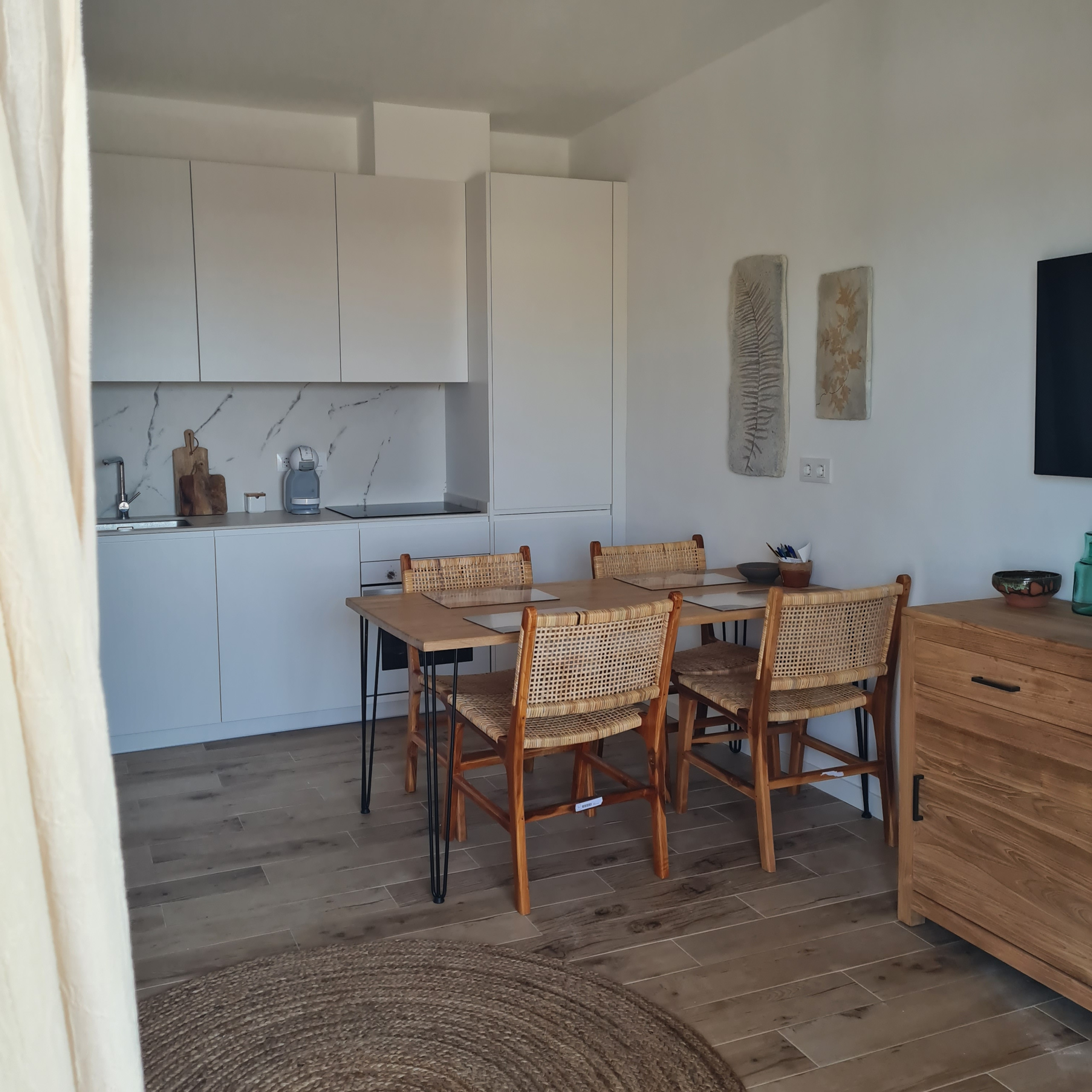 El apartamento en San Luis posee 2 dormitorio(s) y capacidad para 6 personas. Alojamiento de 50 m². Dispone de terraza, lavadora, plancha, acceso internet (wifi), secador, calefacción bomba de calor, aire acondicionado, piscina comunitaria, parking aire libre, 3 ventiladores, 1 Televisor. La cocina americana, de inducción, está equipada con nevera, horno, congelador, vajilla/cubertería, utensilios/cocina, cafetera, tostadora y exprimidor.
